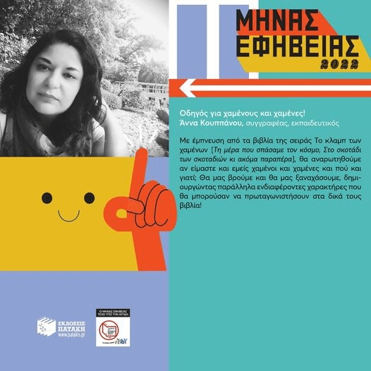 Φέτος, τον Νοέμβρη, θα συμμετέχω στον Μήνα Εφηβείας των Εκδόσεων Πατάκη. Αν ενδιαφέρεστε να λάβετε μέρος με την τάξη σας, επικοινωνήστε με τις Εκδόσεις Πατάκη για να συνεργαστούμε, να μελετήσουμε πραγματικούς και μυθοπλαστικούς χαρακτήρες και να χαθούμε στον κόσμο της συγγραφής!